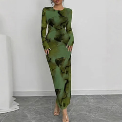 Robe longue moulante élégante en mousseline de soie à dégradé, sans manches, à nouer, taille haute, BR6018