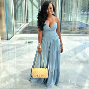 BR5505 Combinaison haute en denim pour femme sans bretelles motif pantalon cargo multi-poches