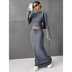 BR5850 Top a tubo e gonna a trapezio a vita alta elegante Set di luci donna