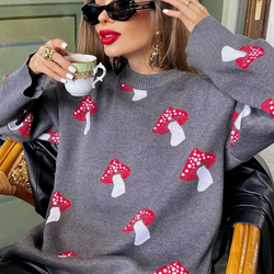 BR4748 버섯 자카드 풀오버 스웨터 여성의 가을 느슨한 대조 스웨터 재킷