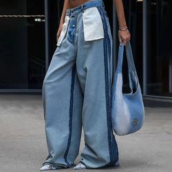 BH1264 Moda Elegante Patchwork Perna Larga Denim Calças Com Três Listras Spice Gyrl Jeans