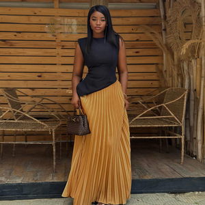 Cintura alta saia plissada camisa sem mangas de duas peças conjunto fresco doce irregular pescoço sólido BR5875 feminino