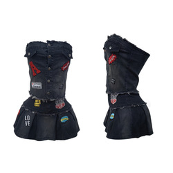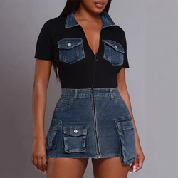 BR5502 kadın seksi askısız saten dikiş Denim etek takım elbise yeni moda