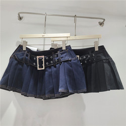 BR5841 düşük bel A-Line pileli etek sıcak kız zayıflama kadınlar için düz renk Denim kısa rahat bel