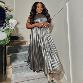 Bh1423 Hot Bán Đảng sequin một dòng cổ khe thời trang giản dị sàn Chiều dài worsted rắn tự nhiên eo dệt váy