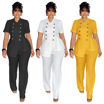 Br5569 của phụ nữ thời trang v-cổ nút xếp li Slim Fit Top Casual quần dài rắn