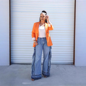 Br5504 rửa Fringe jeans cho phụ nữ cao-eo thẳng quần