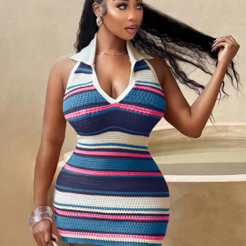 Br5576 Mùa Hè Mới Của Phụ Nữ Giản Dị Sọc Sexy V-Cổ Dệt Kim Hip Dress