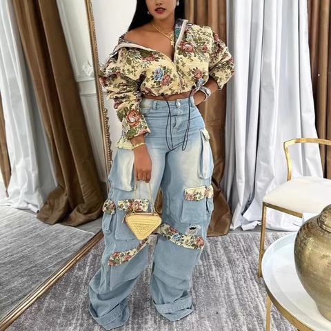 Bh1576 Phụ Nữ Giản Dị Đường Phố Ripped Rửa Thẳng Chống Pilling Đa Túi Ngụy Trang Quần Vận Chuyển Hàng Hóa